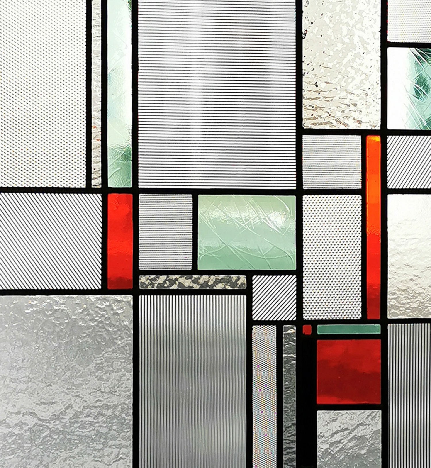 N’allez pas croitre que le vitrail est forcément chargé et désuet : il sait aussi être épuré, sobre, géométrique… Pour créer des rappels à votre vitrail dans votre intérieur, pensez aux coussins, petites touches de couleurs bien pratiques à disséminer par ci par là et qui servent de « raccords » (exemple, pour un vitrail transparent, bleu et jaune, placez un coussin bleu et un coussin jaune, ailleurs dans la pièce).