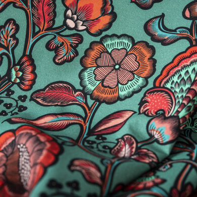 Illiade, pour rêver d’un bassin où contempler les carpes japonaises… A commander confectionné en coussins, et à mélanger à des coussins unis reprenant les couleurs de l’imprimé.