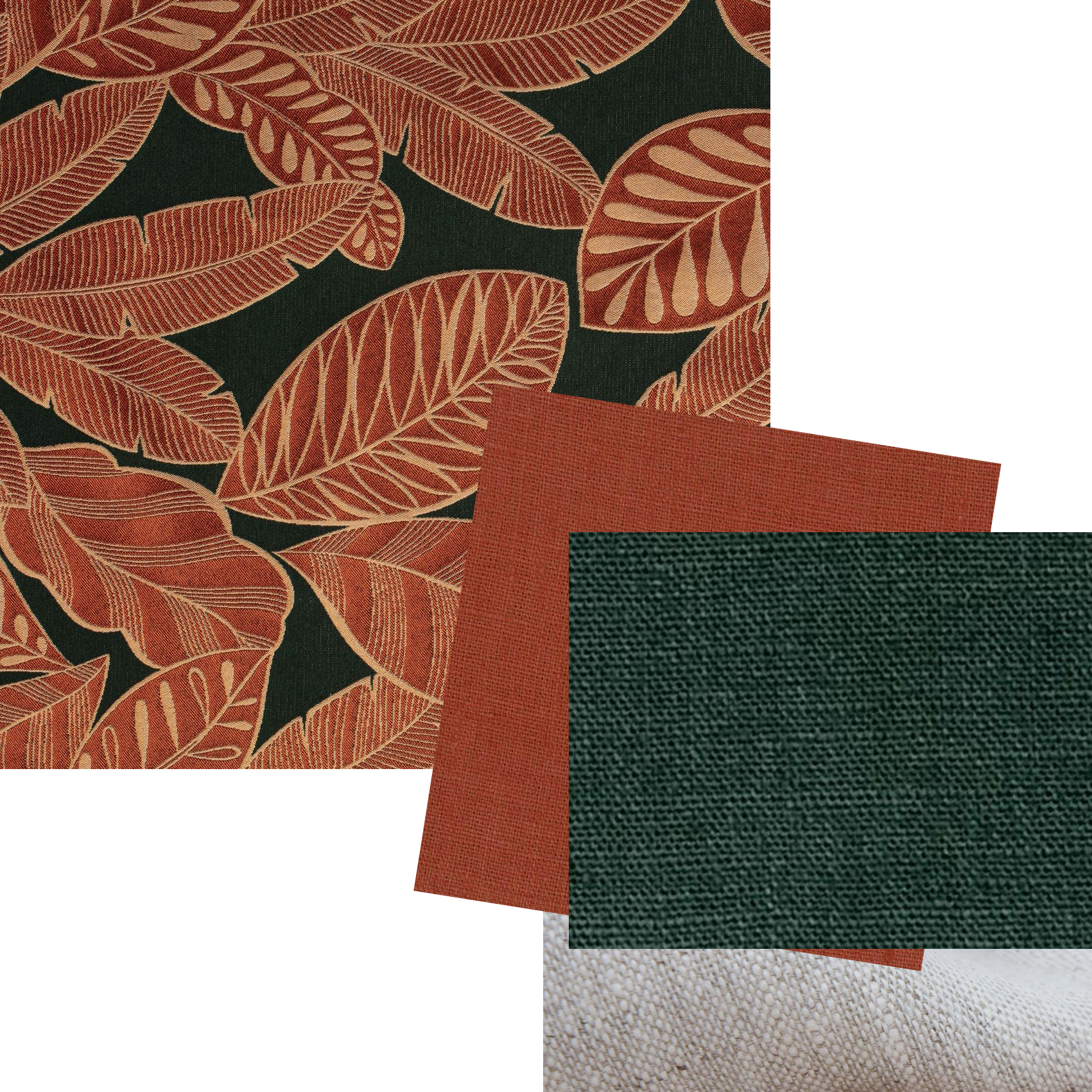 Voici maintenant une sélection de tissus couleur terracotta provenant des collections de nos éditeurs de tissus d’ameublement partenaires, à faire confectionner dans nos ateliers en rideaux, coussins, banquettes, jetés de lit… Laissez-nous faire les présentations.