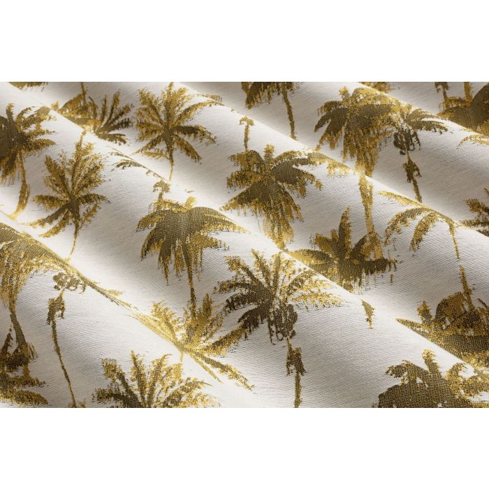 Le jaune ocre plus ou moins ensoleillé ou ombré se décline dans les palmiers ébouriffés de ce modèle tissé adapté à l’usage en extérieur et aux éventuelles intempéries. Du jaune, de l’écru, des palmiers, quoi de plus pour se plonger dans l’ambiance d’un délicieux moment passé dehors aux beaux jours ? Pour accompagner Oasis jacquard outdoor, pensez aux autres tissus outdoor assortis tels que Toundra, Berbère, Touareg. L’usage le plus évident pour les tissus outdoor : la banquette sur mesure, sorte de coussin / matelas spécifique fabriquée avec une mousse haute résilience spéciale assises, à disposer sur un banc de jardin en bois ou en résine pour le rendre extrêmement confortable, et davantage mis en valeur. Exemple : banquette sur mesure en Oasis jacquard outdoor, coussins aux dimensions à choisir dans les tissus Toundra, Berbère, Touareg.