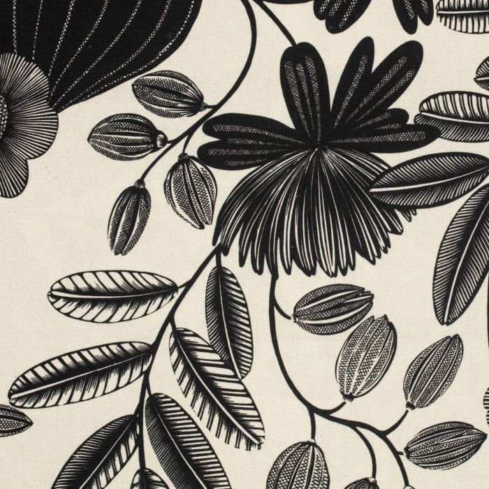 Imprimé en noir sur un fond clair discrètement vanillé, le dessin Orphée, avec ses hachures, parallèles ou entrecroisées, façon gravure, fait figure d’intemporel et sait se glisser dans tous les registres de la décoration. Mobilier classique, voire historique, ou contemporain, tout lui va. Le support d’impression, une grosse toile 100% coton, a démontré de belles performances en matière de résistance au frottement, même répété. Ainsi, au delà des rideaux et coussins, l’usage en recouvrement de sièges ou banquette est tout à fait envisageable.