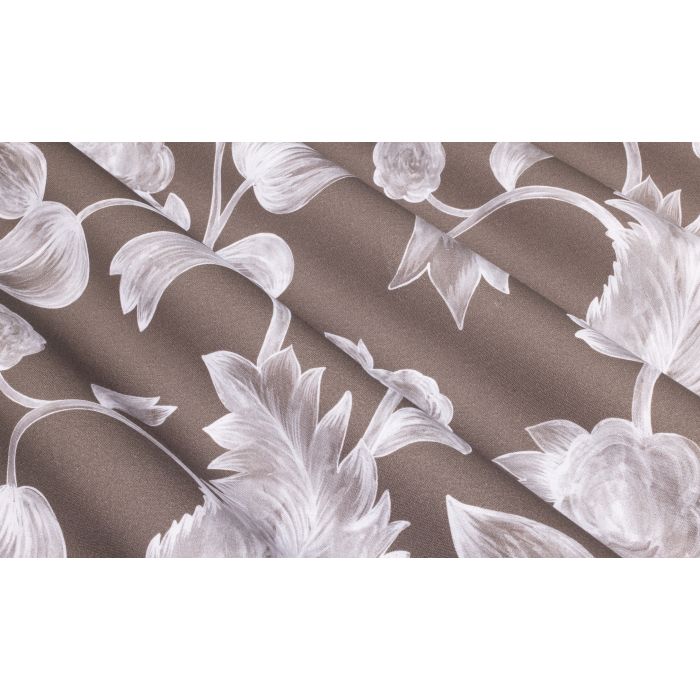 Les effets gouachés crémeux et fondus qui emplissent les motifs de fleurs et de feuilles leur confèrent une apparence antique et chic, douce et patinée. Les formes se découpent très distinctement sur les fonds unis en aplats, à choisir en écru, marine ou Dolphin gray, des coloris adaptés au romantisme classique de ce dessin intemporel.