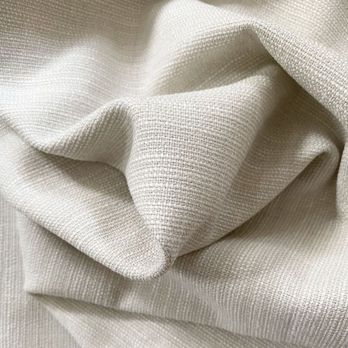 Ce tissu de qualité siège s’utilise pour tout produit de décoration textile, et notamment en rideaux pour le salon ou la chambre dans ce coloris blanc cassé, plus grisé que le coloris blanc et cependant toujours très clair, comme une perle d’eau douce, une étape entre un blanc et un mastic clair.