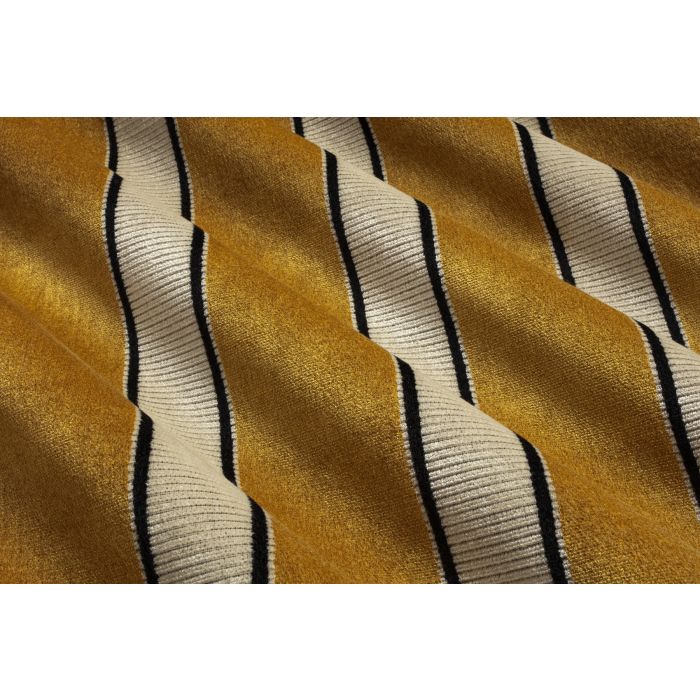 La rayure Royal jacquard séduit par son alternance de bandes en velours de viscose et en tissage cannelé, séparées et mises en valeurs par de graphiques lignes noires. Ce modèle donne de l’aplomb et du cachet à la décoration.