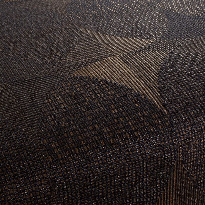 Fil cuivré fin et fil noir épais presque laineux, chiné de pointes grises, s’allient pour dessiner un maxi motif de formes rondes travaillé en effets de matières. Un décor imposant mais subtil se révèle au gré des reflets. Les produits aux grandes dimensions, comme les rideaux, meubles recouverts, canapés, sont les plus appropriés pour que les motifs restent lisibles (raccord dessin 77 cm).