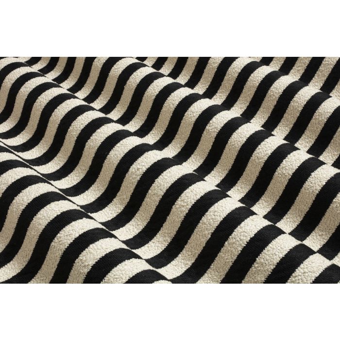 Simple au premier regard mais tellement élégant et efficace, Matteo jacquard propose des rayures régulières où le noir et l’écru jouent à parts égales. On retrouve les textures étonnantes d’Andréa jacquard, avec un sergé noir tissé de fil régulier, et un fil écru plus fantaisiste, moelleux et expansif, proche de la bouclette. Joli twist décalé et très habillé d’un grand classique du vestiaire comme de l’ameublement !