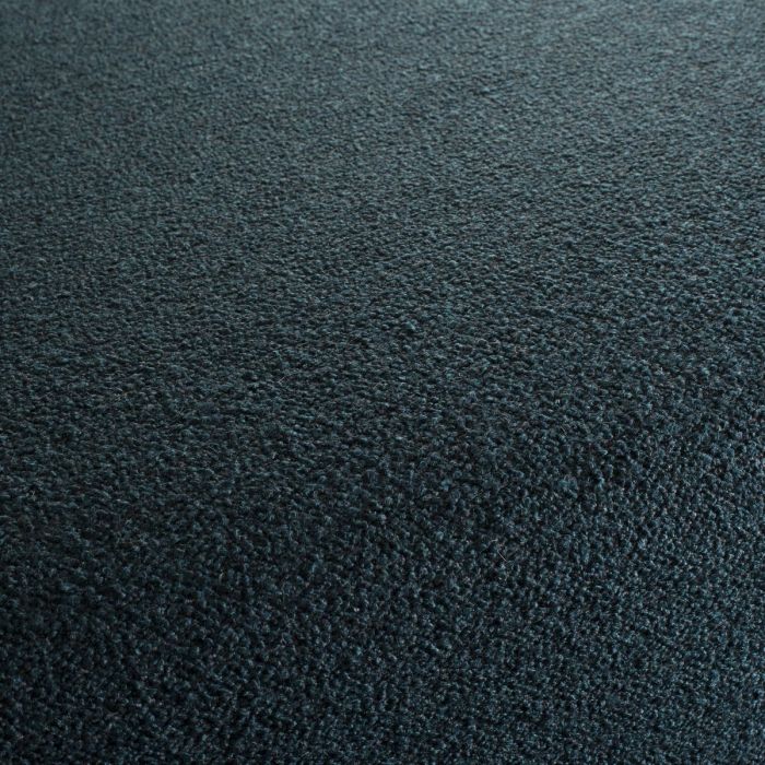 Souvent vue en coloris écru (en canapés, fauteuils design sans angles, chauffeuses, tapis) la bouclette, tissu déco réconfortant et adapté aux frimas, trouve un renouveau certain lorsqu’elle se pare d’autres couleurs. Ici, un vert bleuté foncé. Techniquement, un fil épais frisotant s’insère dans un fond tissé gris, visible sur l’envers du tissu, et que l’on devine très discrètement sur l’endroit dans les interstices.