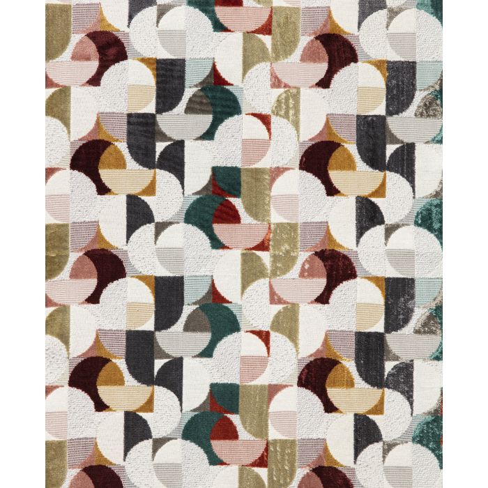 Les motifs géométriques circulaires des sixties sont de retour, et adoptent des textures tour à tour lisses, 3D ou intermédiaires, avec des changements de fils, secs, bouclettes, velours.