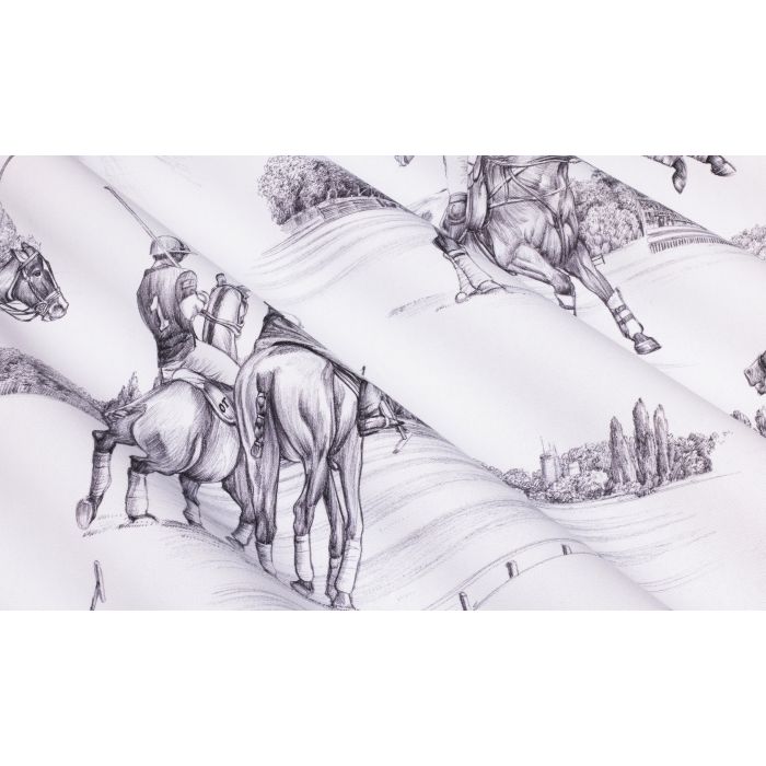 Dans cette version sans couleurs du modèle Estancia, le traitement est au plus près du geste artistique dans sa sobriété, son humanité, ses finesses, avec le grain du crayon graphite apparent et les hachures légères ou appuyées au gré des modelés. La musculature saillante de chevaux agiles et réactifs est mise en valeur. Les cavaliers créent des lignes graphiques en élevant leurs maillets dans les airs.