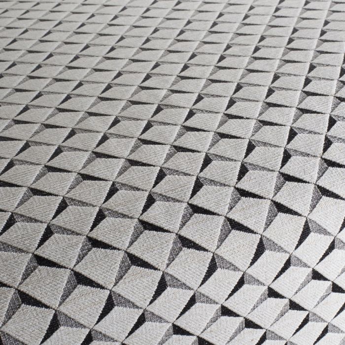 Moins chaud que London beige noir aux accents cacaotés, plus contrasté que London beige naturel et sa discrétion ton sur ton, London écru noir peut prendre place dans un thème de décoration en noir et blanc. Les motifs de prismes géométriques en fil chenille épais sur fond tissé chiné plus plat et sec à triangles aigus donnent à ce tissu un air de kaléidoscope. Parfait pour les rideaux et coussins du salon, pour un bureau, et éventuellement dans une chambre parentale en recherche de sobriété malgré la touche de fantaisie des motifs à effet 3D.