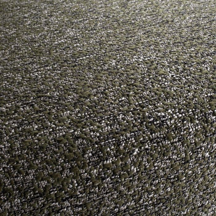 Avec son gros fil vert emprisonné dans le tissage gris pâle et noir, et présentant des boursouflures, ce coloris du tissu Moontrace par Chivasso (du groupe Jab) possède un esprit nature certain, comme une évocation de mousse et de pierre. Riche en texture, libre et expansif dans son effet chiné aléatoire, ce faux-uni, confectionné en grands coussins, peut réveiller un canapé tout simple. En rideaux épais, en siège, il impose une présence forte et beaucoup de matérialité.