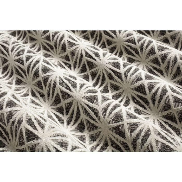 Le dessin de Pharaon part d’un quadrillage de toute la surface, portionné ensuite par des lignes obliques, le tout créant une répétition d’étoiles graphiques à l’infini… Il se détache du fond par sa matière velours et son coloris grège, clair et neutre. Pensez à créer des liens dans votre décoration : le velours faux-uni Sphinx grège est le partenaire idéal pour Pharaon grège. Quand l’un est employé en rideaux, on peut penser à l’autre pour des coussins ou une banquette d’appoint aménageant une niche ou finalisant le dessus d’un meuble.