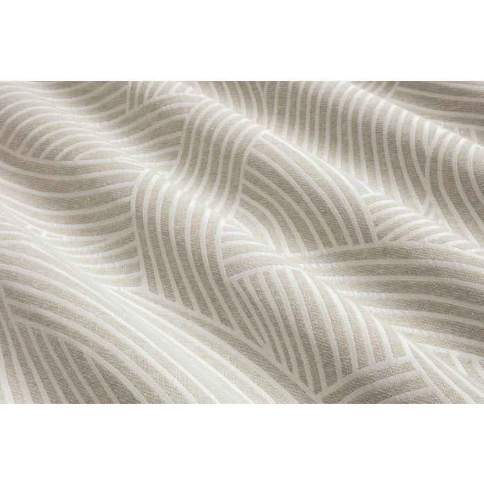 Le tissu recto / verso (avec inversion des couleurs et effet piqueté au verso) Tip Top jacquard semble être une réponse en version souple et langoureuse au dessin Shiro jacquard. Les lignes courbes et parallèles des différentes parties du décor tracent des sillons, des chemins, des rubans. On y lit des rencontres, des intersections, des directions, des passages dessus-dessous.