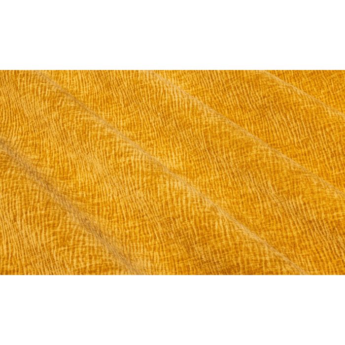 Ample, onctueux et bien nourri, ce velours froissé évoque une peau, un vieux cuir, un parchemin. Un vécu chaleureux s’exprime à travers sa matière frémissante, finement ridée comme le sable mouillé, tout en tactilité. Les couleurs évoquent des métallisations adoucies, noircies ou patinées : métaux érodés, minéraux, coquillages. L’atmosphère est douce, feutrée, savamment confidentielle.