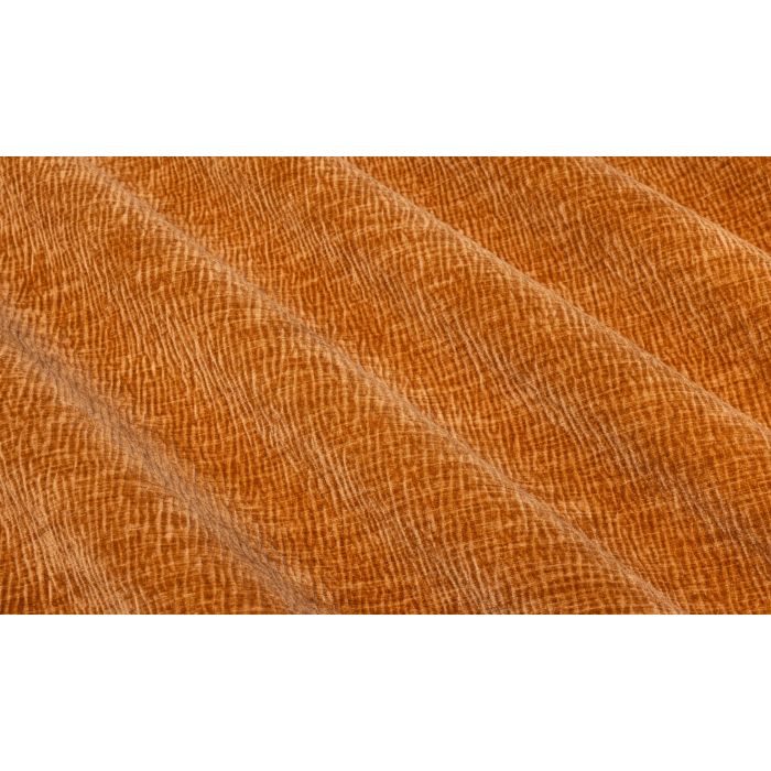 Ample, onctueux et bien nourri, ce velours froissé évoque une peau, un vieux cuir, un parchemin. Un vécu chaleureux s’exprime à travers sa matière frémissante, finement ridée comme le sable mouillé, tout en tactilité. Les couleurs évoquent des métallisations adoucies, noircies ou patinées : métaux érodés, minéraux, coquillages. L’atmosphère est douce, feutrée, savamment confidentielle.