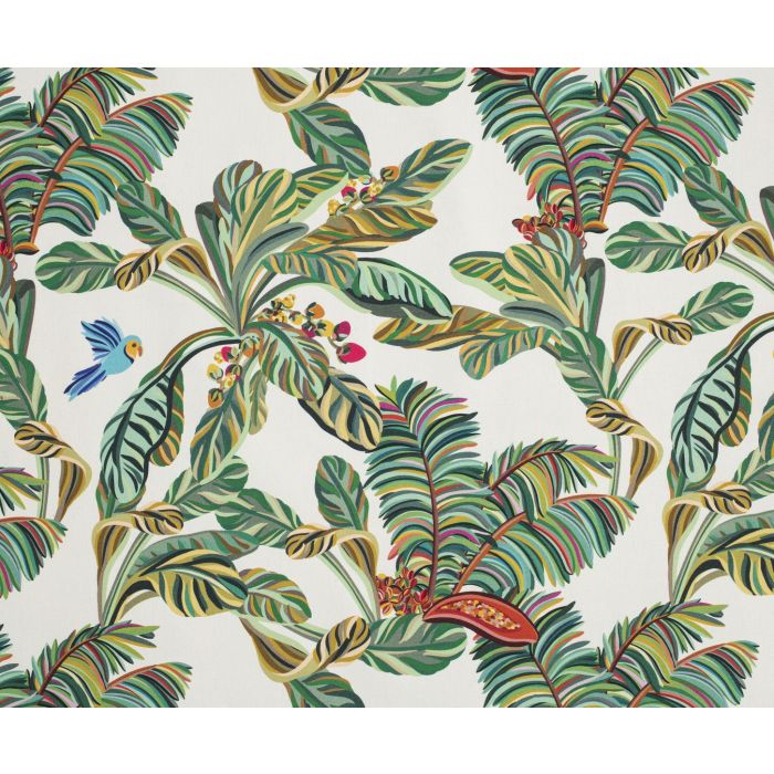Fruit d’un partenariat entre la maison Thévenon et Guru del Sol, le dessin Yasmine, au style Pop et bigarré, revisite avec spontanéité et joie de vivre le thème jungle devenu classique chez les amoureux de la nature comme chez les adeptes de déco bohême, et autres experts en ambiance vacances au cœur des lieux de vie quotidiens. On aime le fond clair qui donne lumière, apaisement et élégance aux nombreuses touches de couleurs présentes dans les motifs.