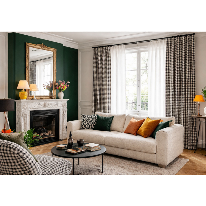 View more about RIDEAU MATTEO JACQUARD NOIR / BLANC