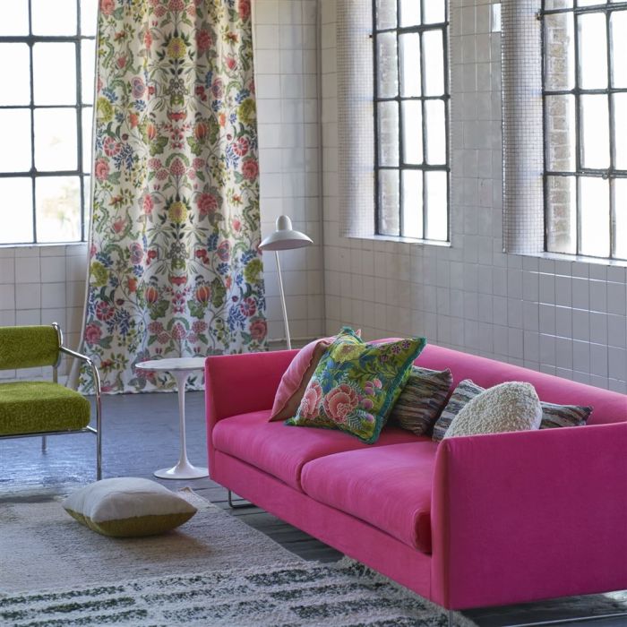 Inspiré par les riches brocarts décoratifs utilisés dans les intérieurs somptueux populaires à l'époque du Salon d'Automne de 1905 à Paris. Cet élégant lin à imprimé floral présente des fleurs et des feuillages finement peints disposés en miroir avec des pétales ombragés et des feuilles rayées. Ces superbes coloris sont imprimés numériquement sur un lin pur pour une draperie élégante. Certifié Oeko-tex. - COLLECTION Fleurs D'Artistes
