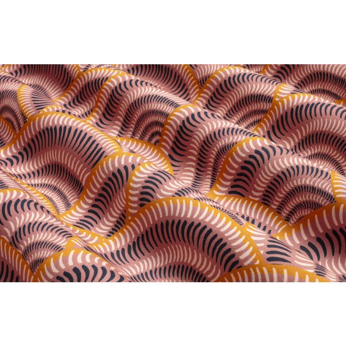 Certaines colorations sont comme de délicates et irrésistibles confiseries, et c’est le cas ici avec Fairy Light fond vieux rose… Un air de guimauve et de miel, dans ces rondeurs empilées en naïves et féériques collines… Nous aimons l’idée d’accompagner cet imprimé sur coton de bois miel ou de rotin ; mais vous pouvez aussi décider de lui donner du contraste et du sérieux avec un mobilier noir amenant un côté plus graphique.