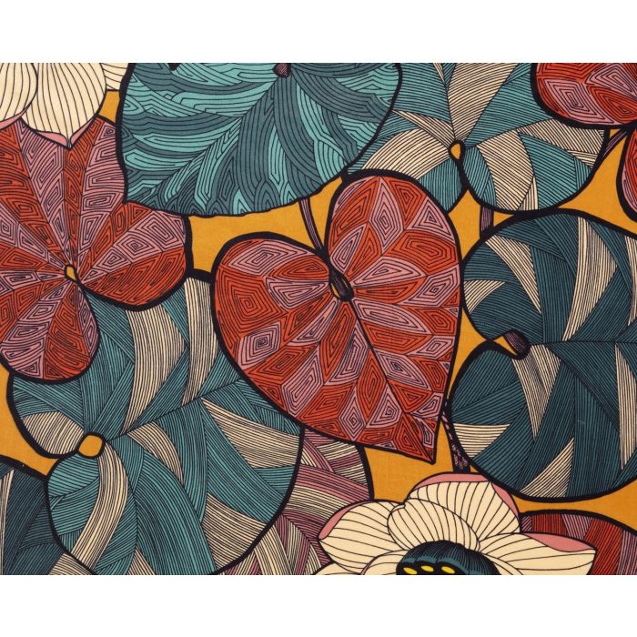 Timorés s’abstenir, cette version du fabuleux dessin Idris a prévu d’en mettre plein la vue. Coloris chauds (brique, rose) et froids (turquoise, bleu pétrole), s’entrechoquent sur un fond lumineux où l’orangé rencontre la suavité du velours pour un véritable cocktail sensoriel. A confectionner en rideaux plein de peps, ou coussins pour décoiffer un intérieur plus calme. Un peu de bonne humeur n’a jamais fait de mal à personne !