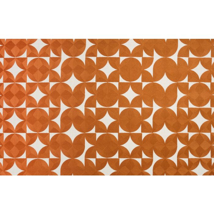 Les motifs bicolores de ce tissu brodé puisent dans la géométrie de l’art optique pour un pavage décoratif associant l’impact visuel à la minutie des détails. Une originalité vient surprendre : les formes semblent glisser pour trouver de nouvelles combinaisons. Notre esprit construit et reconstruit le décor, au gré de l’imagination.