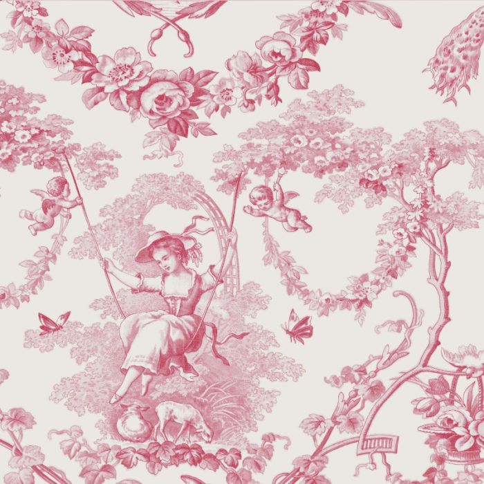 Ludivine rose fond crème représente, avec le coloris naturel, l'un des deux coloris les plus classiques de la gamme de couleurs de cette toile de Jouy mythique signée Thévenon. Elle respecte l'esprit monochrome des premières toiles de Jouy, telles qu'elles naquirent en 1760 à la manufacture de Jouy-en-Josas, ainsi que le fond clair habituel de l'époque. Fantaisie, coquetterie et féminité se déclinent à travers les motifs de fleurs, d'oiseaux, de longues feuilles enroulées en spirales et d'une jolie demoiselle assise sur une balançoire sous les regards d'angelots protecteurs et de paons paisibles. Cette toile pur coton est une manière ravissante d'apporter une touche de charme à la décoration et d'oser sans crainte l'imprimé avec un intemporel.
