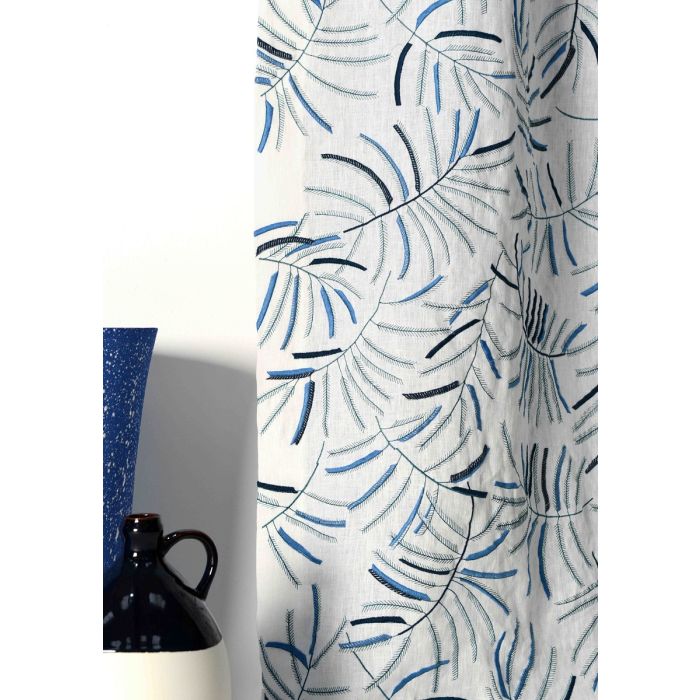 Un vrai feu d'artifice que ce motif de mimosa brodé sur lin, joyeux, léger, tournoyant et dense. Les gracieuses branches et feuilles sont travaillées dans un camaïeu de bleus sur un fond écru. Un fil argenté vient entourer certaines parties pour apporter des éclats de lumière. Le lin brodé Mimosa s'utilise en rideaux, stores, jetés, coussins si l'on accepte de ne pas avoir le décor brodé total, nappe des grands jours.