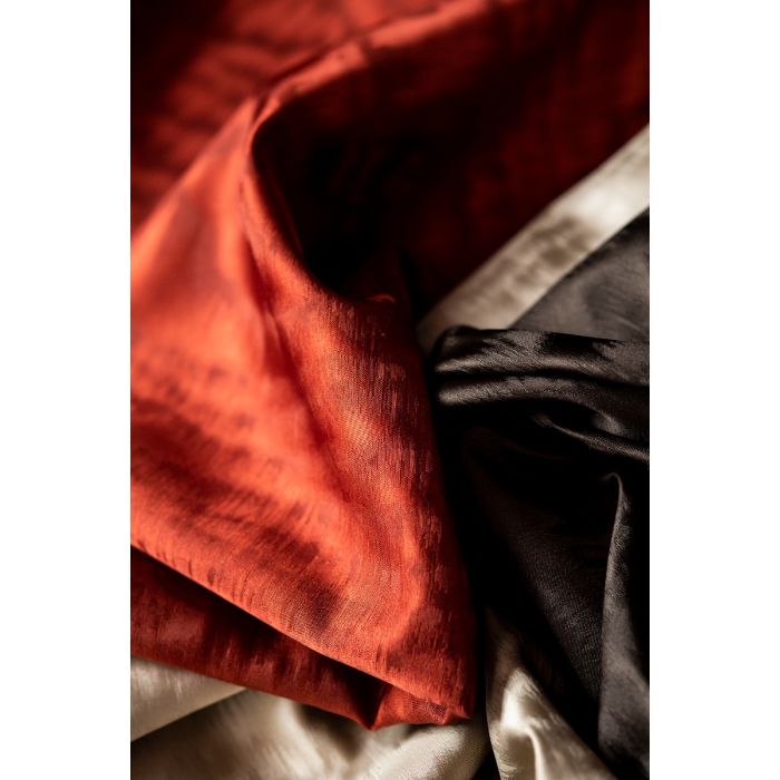 Le taffetas moiré orange présente un brique flamboyant : de quoi faire rayonner les intérieurs et y injecter une forme d’énergie chaleureuse.