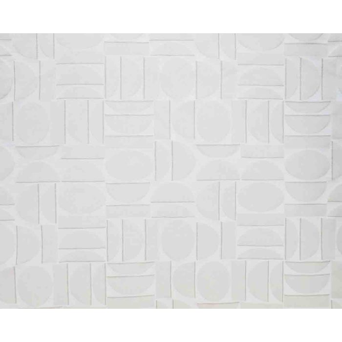 Motifs pleins et graphiques, comme des quartiers d’ovales tournés tantôt à plat, tantôt sur la tranche, d’humeur rétro et joueuse, se camouflent en ton sur ton de faux blancs dans un tissage au relief gommeux. La composition matière associe le coton et le lin quasiment à parts égales. A confectionner en rideaux, coussins, sièges, et à assortir librement aux autres modèles signés Lelièvre pareillement issus de la collection Borealis : Altitude, Taïga, Helsinki…
