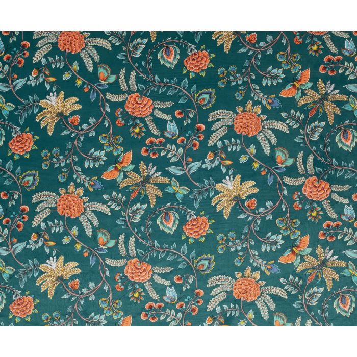 Un souffle exotique infuse la coloration de cette variante fond émeraude du dessin Golden Life, et vient renforcer le caractère dépaysant, presque folklorique, des motifs floraux Perses. Le tout est servi sur velours pour une touche précieuse et câline. Mariage d’amour avec du mobilier en bois, qu’il soit clair (option la plus jeune d’esprit), naturel grisé (option la plus décontractée et bohême), ou foncé (effet glamour chic assuré).