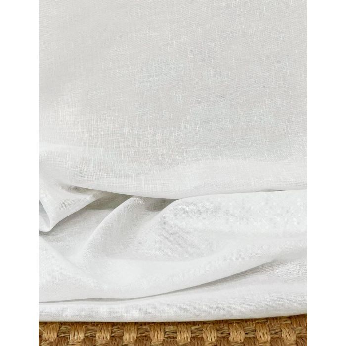 Le voile polyester et lin Jacinto répond dans la plus grande simplicité au besoin de tamiser vue et lumière. Le tissage toile est animé d’irrégularités, ce qui est un marqueur du lin. Ce tissu est uni, sans ornementation aucune (dans la même marque, vous pouvez découvrir un grand choix de voilages rayés). Ici, nous avons affaire à un vrai blanc, aussi blanc qu’une feuille de papier machine. Ce blanc convient aux intérieurs de style contemporain, là où un style ancien ira plutôt vers l’écru naturel ou le crème.