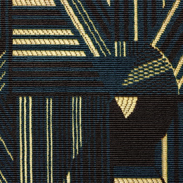 Kasaï use du mat et de l'ultra brillance pour imposer un style majestueux aux allures de bijoux ethniques africains. Ses réseaux de lignes puissantes sont agencés avec un tel souci de géométrie que l'on touche à la frontière du style Art Déco. Cette étoffe est réalisée en viscose et coton suivant la technique du velours épinglé, reconnaissable à ses petites côtes. Grâce à un taux de martindale de 30 000 tours, on peut confectionner Kasaï en rideaux, stores et coussins mais aussi en sièges. On aime ce bleu-vert sombre et mystérieux rehaussé d'éclats d'or jaune.