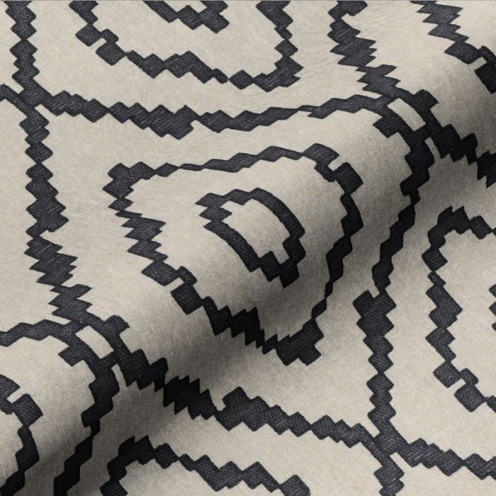 C'est dans son coloris carbon que le tissu brodé Sami exprime au mieux toute la force graphique de son dessin de losanges tracés à grande échelle avec des lignes crénelées qui rappellent les tissages ethniques ancestraux. Pour une déco façon Grand Ouest américain, n'hésitez pas à associer Sami à des matières végétales tressées (tapis, corbeilles, à un fauteuil utilisant pour assise une pièce de cuir ou de peau tendue sur une armature métallique, à des plantes succulentes ou des cactus, des objets récupérés, faits main ou patinés. Misez sur des touches de noir pour asseoir son caractère, et du lin naturel uni qui rappellera la couleur de fond de Sami carbon tout en appuyant son authenticité. Sami peut être confectionné en rideaux, stores, coussins, jeté pour le lit ou le canapé. Vous serez convaincu par la douceur apportée par 37% de laine.