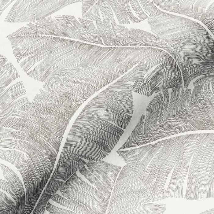 Toile de coton imprimée dessinée par le duo Inkabrik pour Thevenon. La finesse et la délicatesse du trait contrastent avec la grande échelle des feuilles.