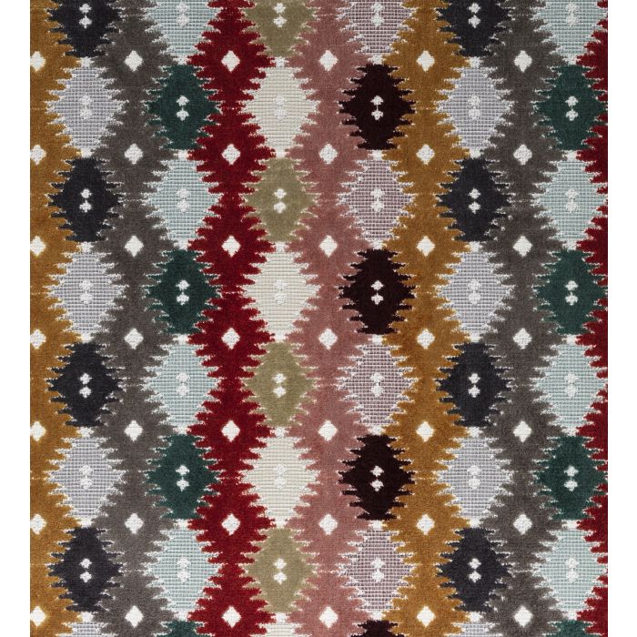 Tissu au metre bombay jacquard brique / taupe / moutarde / rose
