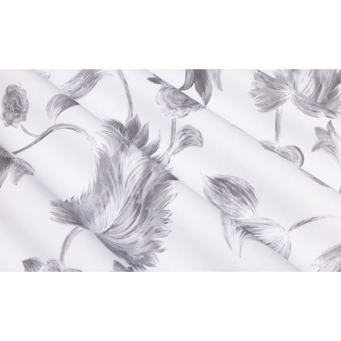 Les effets gouachés crémeux et fondus qui emplissent les motifs de fleurs et de feuilles leur confèrent une apparence antique et chic, douce et patinée. Les formes se découpent très distinctement sur les fonds unis en aplats, à choisir en écru, marine ou Dolphin gray, des coloris adaptés au romantisme classique de ce dessin intemporel.