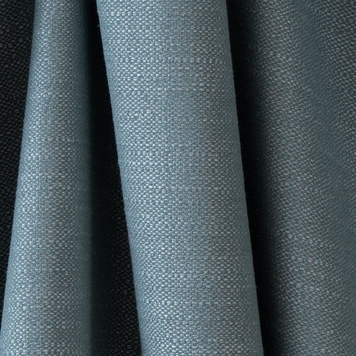 Le tissu faux-uni Vallon utilise l’armure de tissage appelé natté, qui est une exagération du « motif » de l’armure toile. En clair, au lieu d’un fil horizontal (fil de trame) qui se croise dessus / dessous avec un fil vertical (fil de chaine), on a deux fils dans chaque sens, ce qui donne un dessin plus visible des croisements, avec un effet de petits carrés. Ici on a un mélange de fils mats et brillants (relativement) pour une accroche de la lumière particulière et intéressante. Cela est dû à la composition, qui mixe viscose (dite soie artificielle), coton, polyester et lin. Les fils sont assez plats : pas d’effet bombé, de « grain », ce qui donne une forme d’élégance nonchalante. Qualité siège, Vallon est adapté aux banquettes sur mesure et réfection de fauteuils et canapés. Confectionné en rideaux, il laisse observer un tombé un peu cassant, et donc des plis de caractère, surtout avec des rideaux tombant assez longs sur le sol.